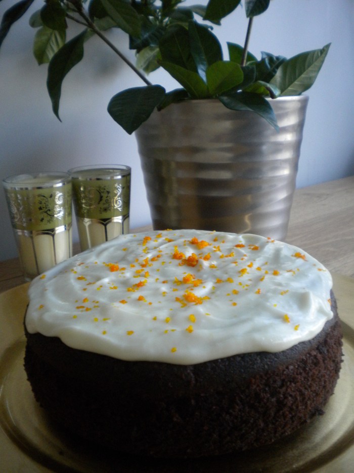 Stand for 10 mins. Turn out and cool on a rack. If you fancy the icing on the cake, fold the mascarpone, cream cheese, sifted sugar and ginger together. Slather over the top of the cake. Grate over the zest of an orange, if it takes your fancy. Tuck in.