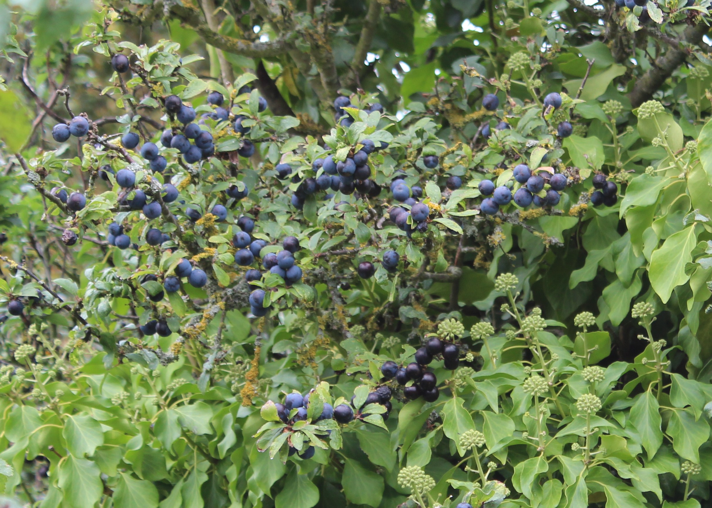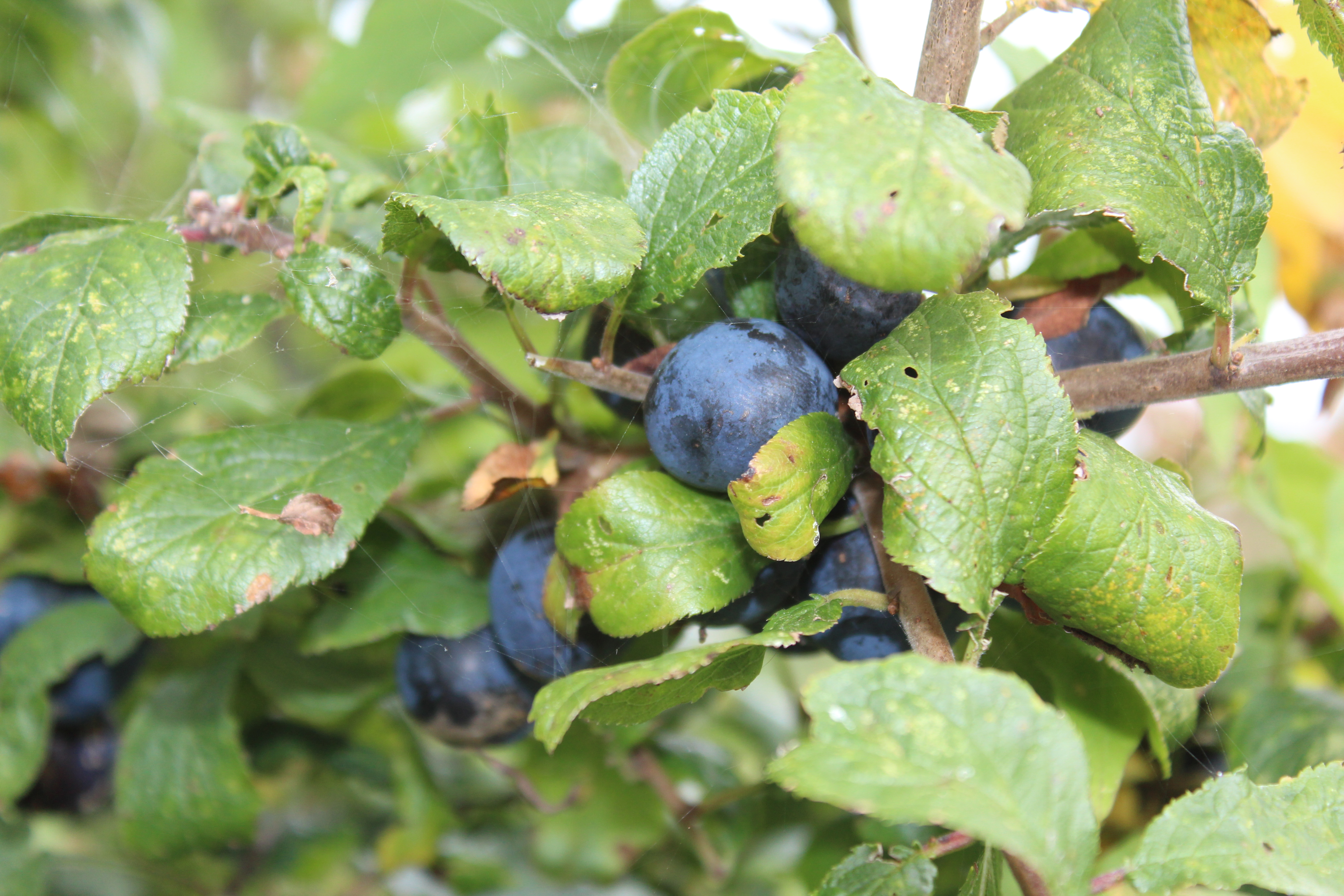 Once you start looking around it’s amazing how much you can find in the hedgerows. Sloes are the fruit of the prickly blackthorn bush and traditionally they are picked after the first frost. Apparently this is because the frost affects the skin of the sloe and allows the alcohol to better permeate. Pricking the skins or freezing the berries can give a similar result. In my (extremely limited) experience sloes seem to be found in the same vicinity as blackberry bushes so it is relatively easy to combine blackberry and sloe picking. You only need a plastic bag for the sloes as they do not squash or damage easily. They look a lot like blueberries and can often be quite difficult to spot until you know what you are looking for as they have a tendency to hide under the leaves. They also like to grow just out of reach so you sometimes have to persevere to find one you can use.