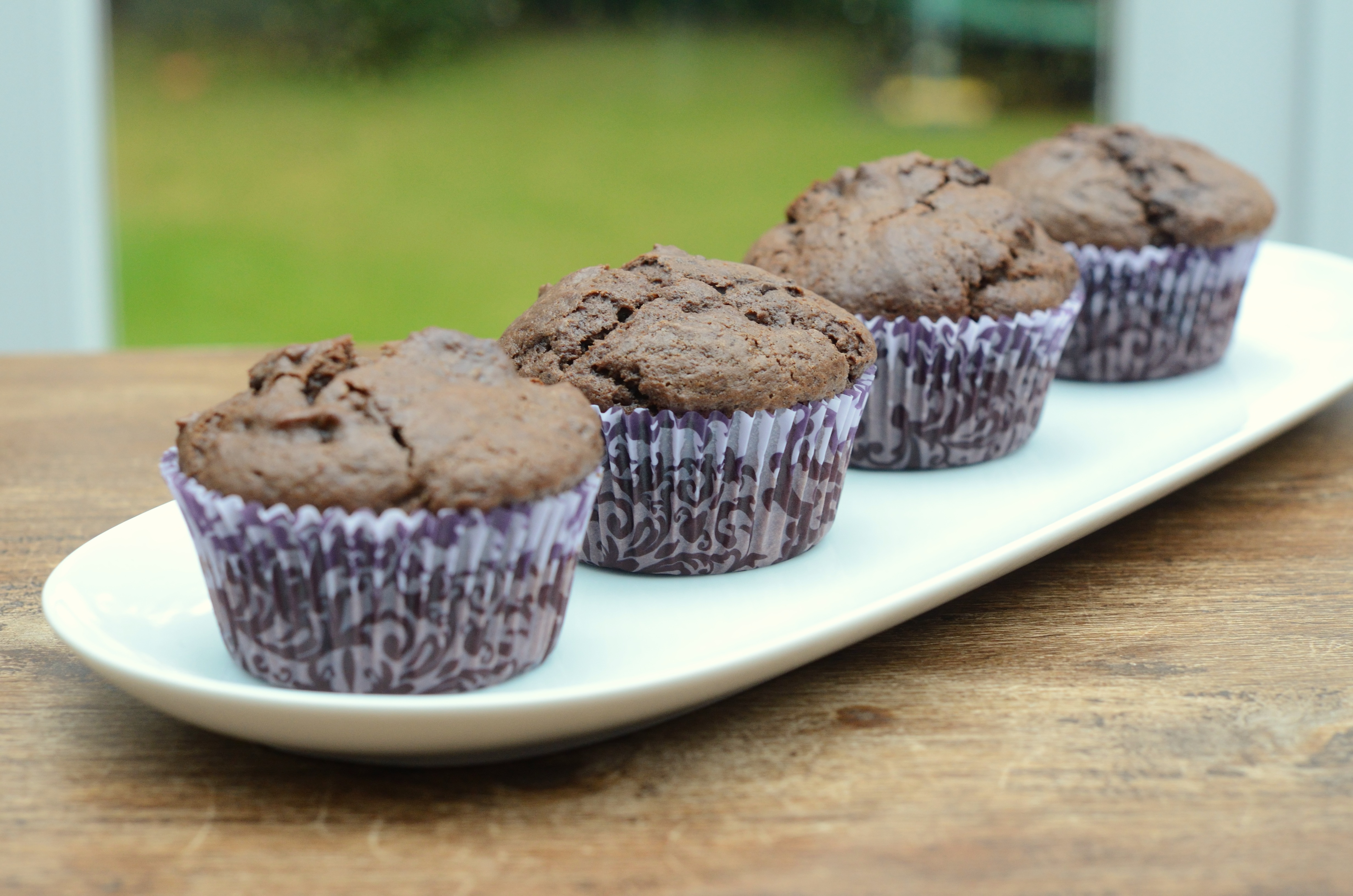 If you like your muffins chocolatey, you’ll love these. Chunks of dark chocolate in a chocolate sponge, best still slightly warm from the oven. And it’s a super easy recipe.