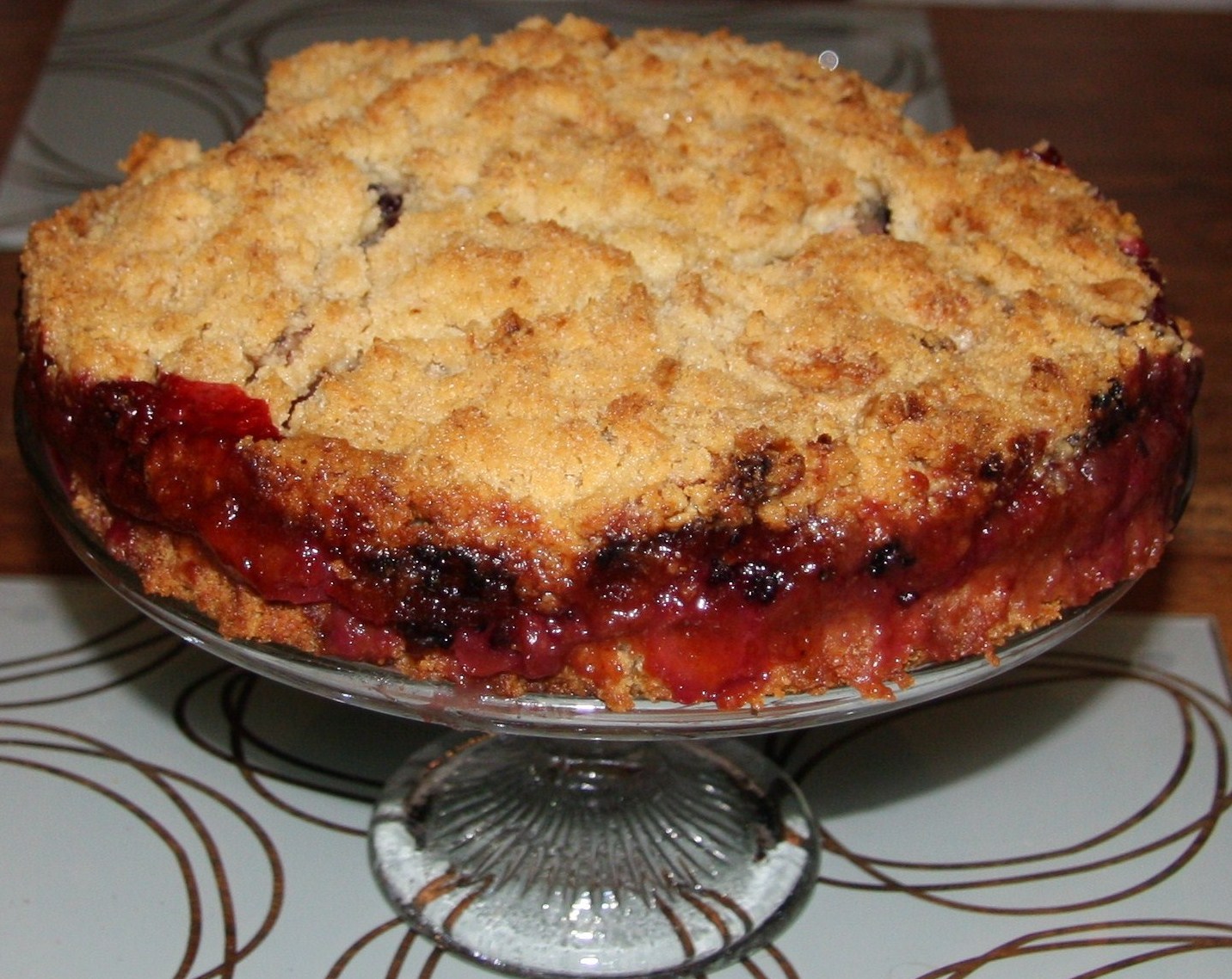 It really is quite difficult to say streusel without a comedy accent so feel free to call this a posh crumble. Essentially it is a very rich crumble or sweet pastry mix, half of which is packed down into the base of the tin and the rest is sprinkled over the fruit. It is absolutely delicious, but despite the fruit, most definitely not the healthiest dessert you could choose!