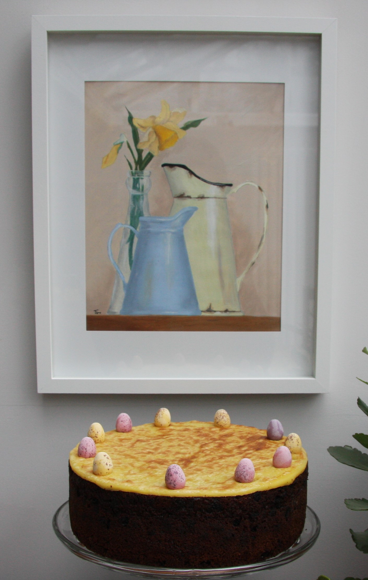Because it is a fruit cake it will keep well and is perfect to have around for guests popping in over Easter. It should be Spring here in the UK but we have snow today! So I have to look at this beautiful picture that my Dad painted for me and imagine instead: