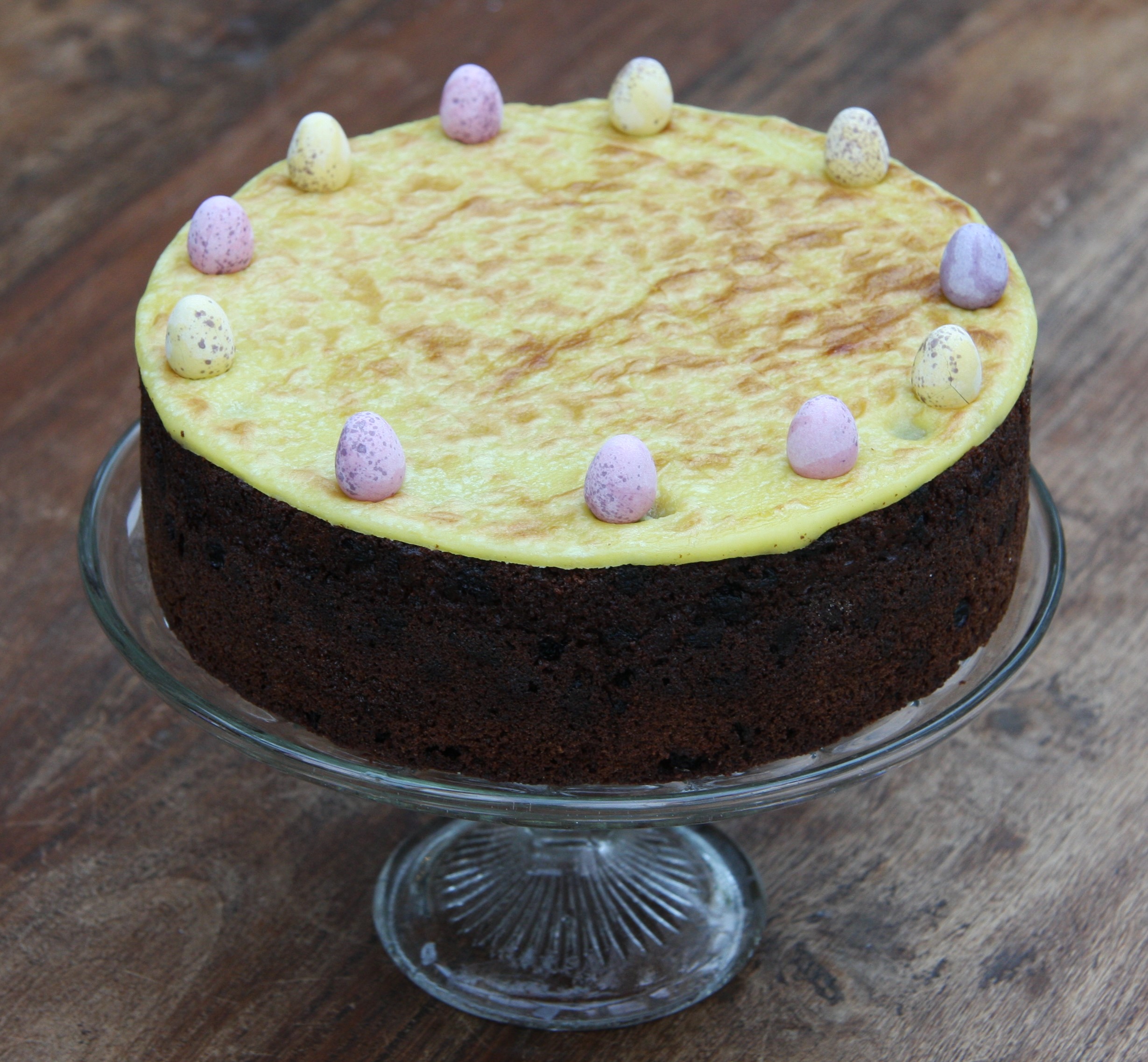 Simnel Cake is the traditional cake eaten at Easter and I remembering making this with my mum every year. It is a rich fruit cake with a layer of marzipan running through the middle and another layer of marzipan on the top. The 11 or 12 balls of marzipan (or chocolate mini eggs) represent either the apostles (without Judas) or the apostles (without Judas) and Jesus.