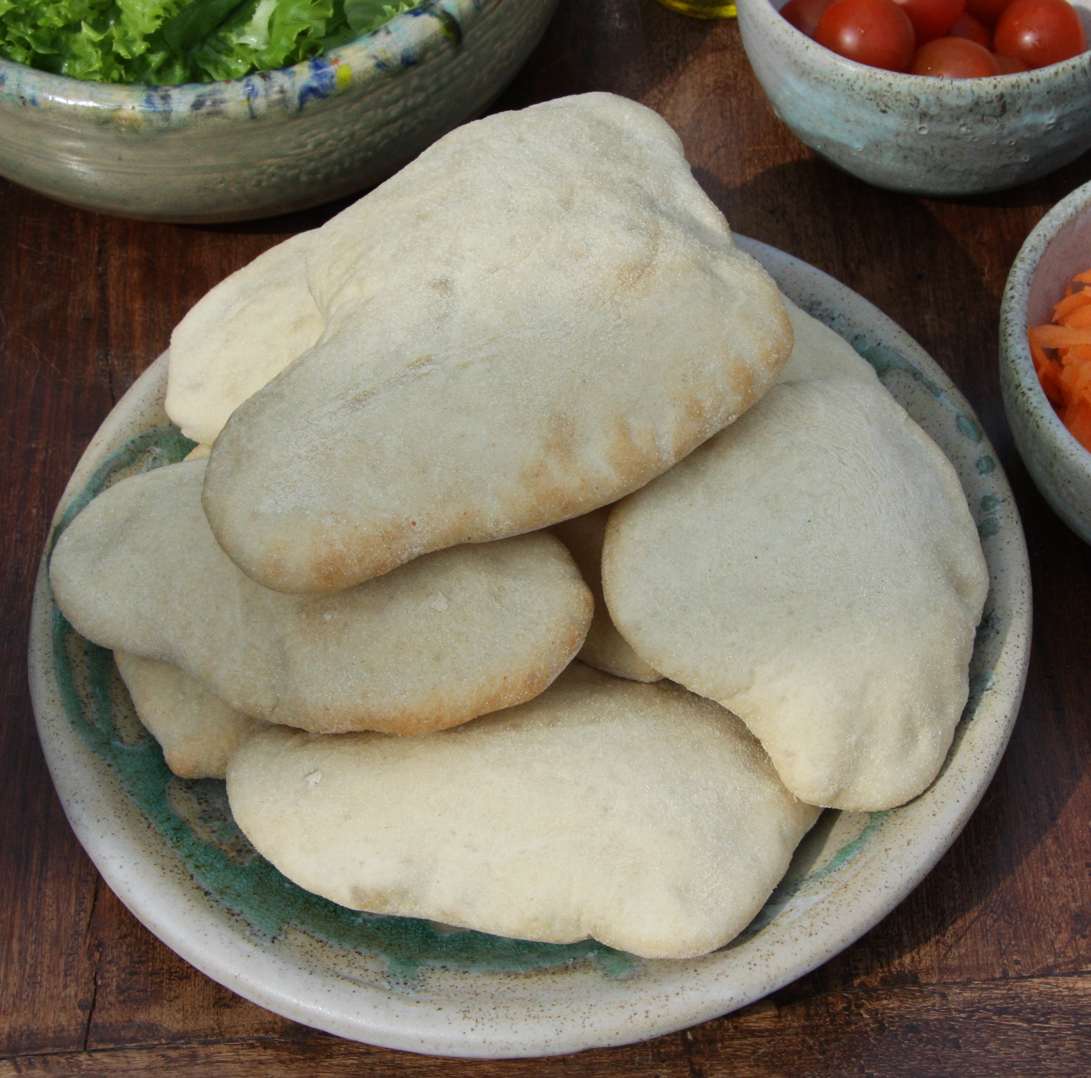 The recipe quantity below will make around 12-16 pitta, depending on how large you make them. Any that are not eaten on the day they are made can be frozen for another time. They are delicious either on their own dipped into oil and vinegar, or filled with salad and any type of cheese and/or hot or cold meat.