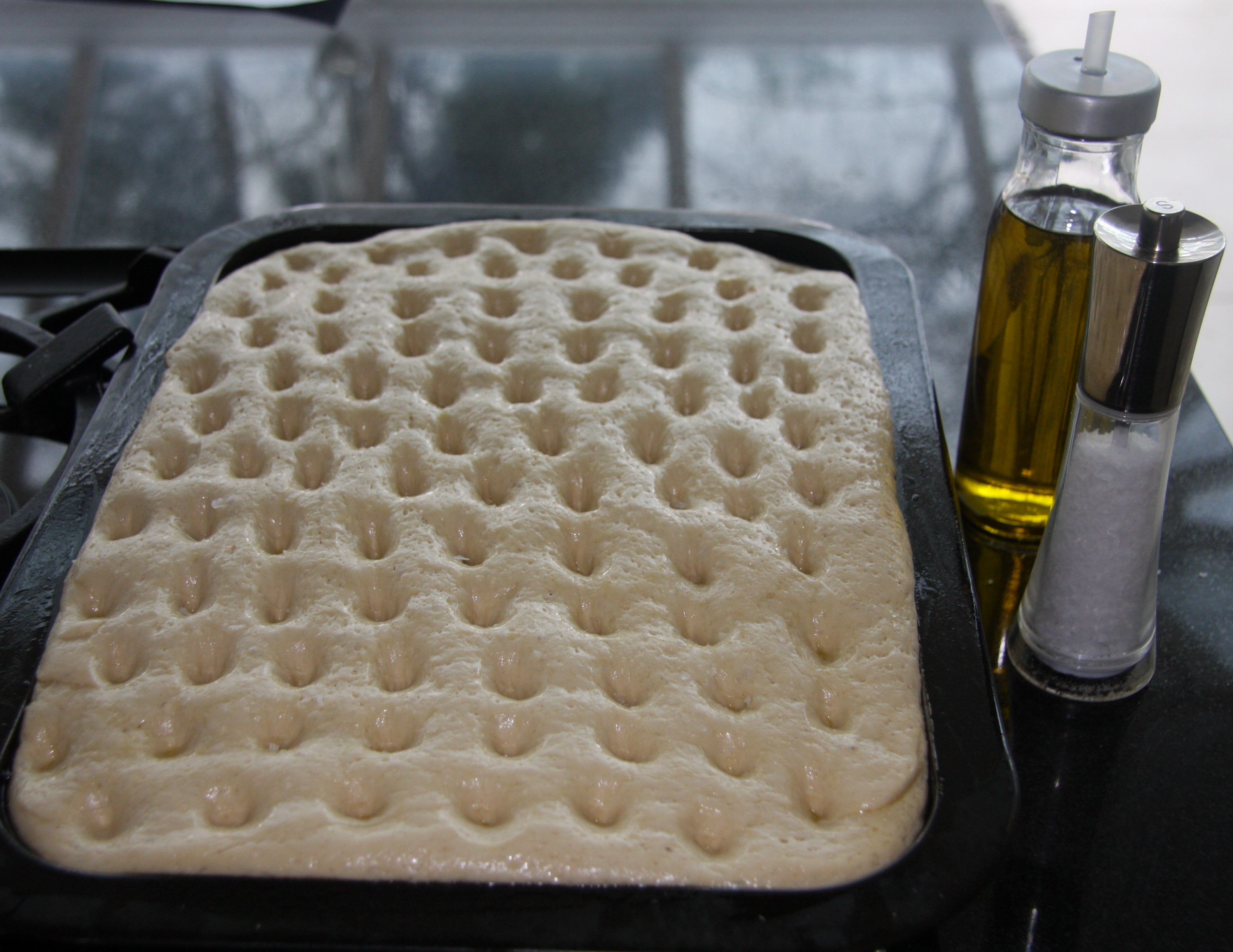 Focaccia ready for the second resting