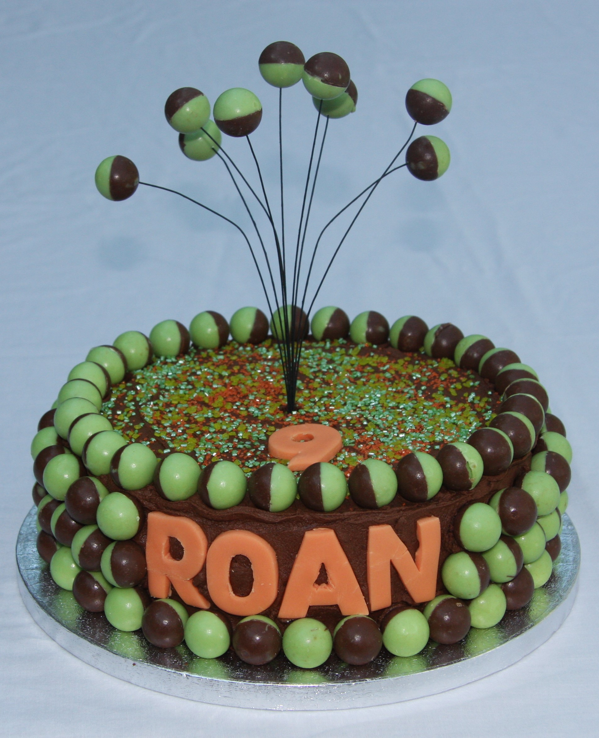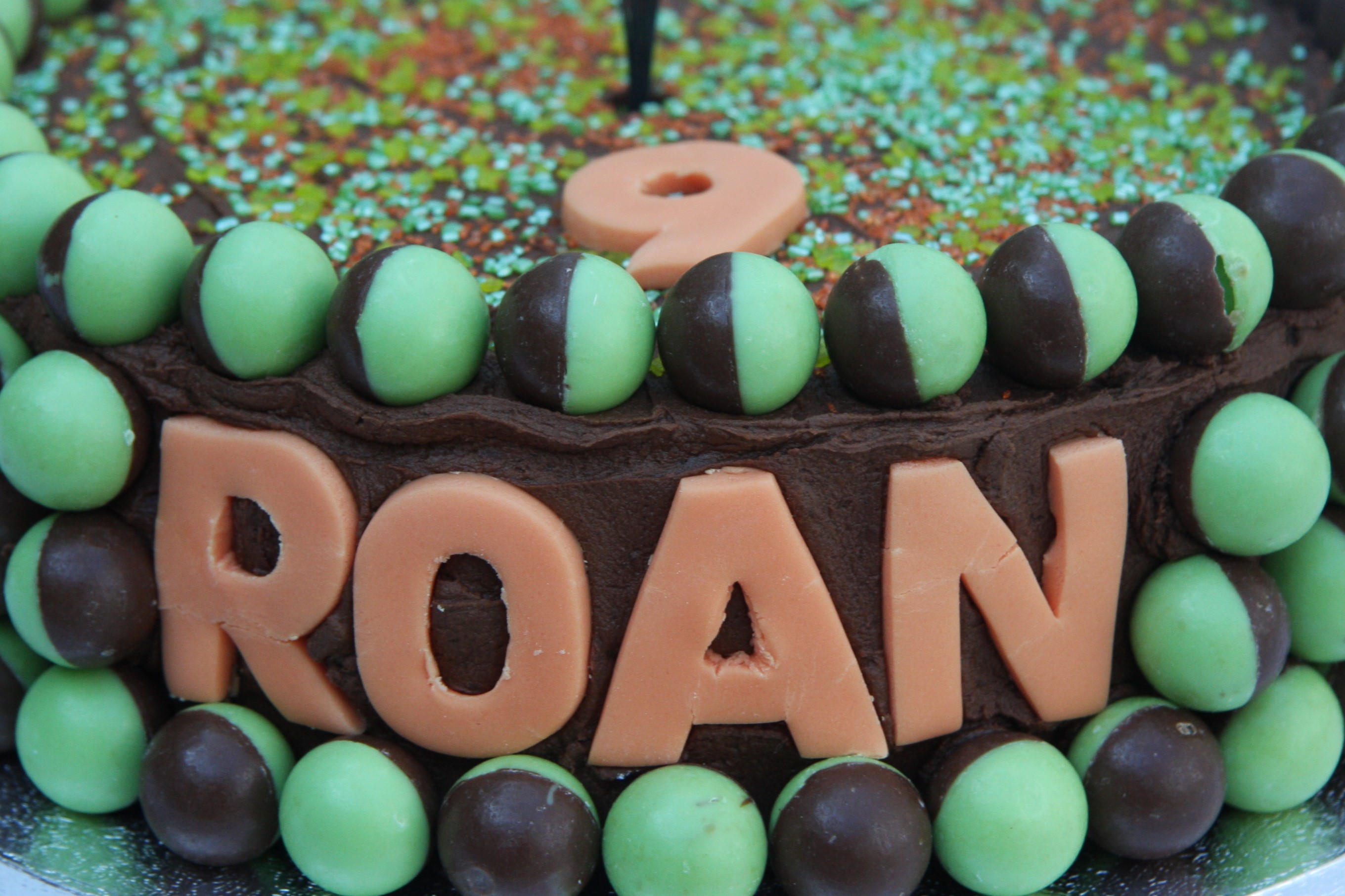 Word is out at Bootcamp that I make cakes so I was really pleased to be asked to make one for my friend Karyn’s son, Roan. He loves mint Aero Bubbles and wanted them on his cake. The green and chocolate balls make a really striking decoration for a cake and combined with his favourite colour, orange, the cake really makes a statement: