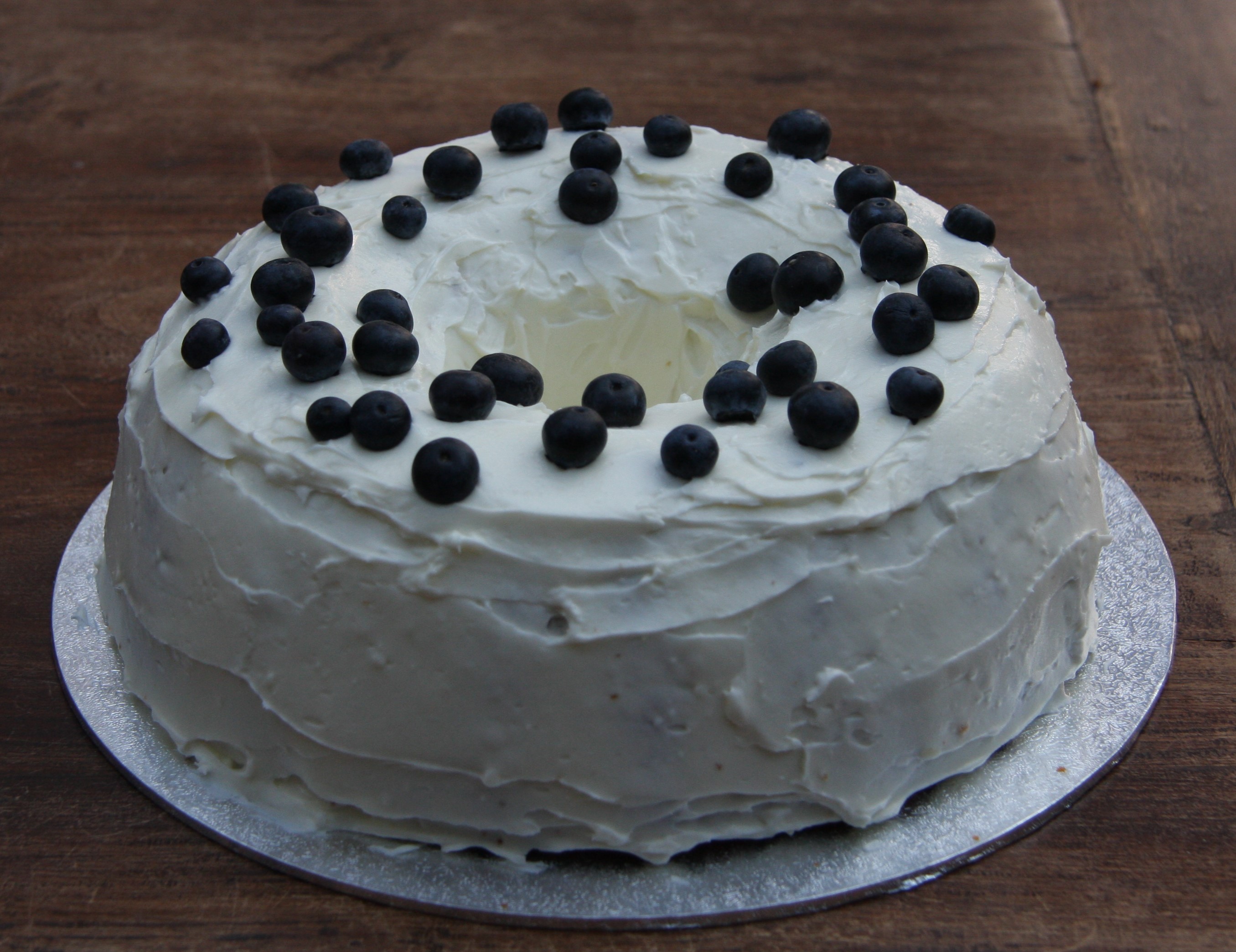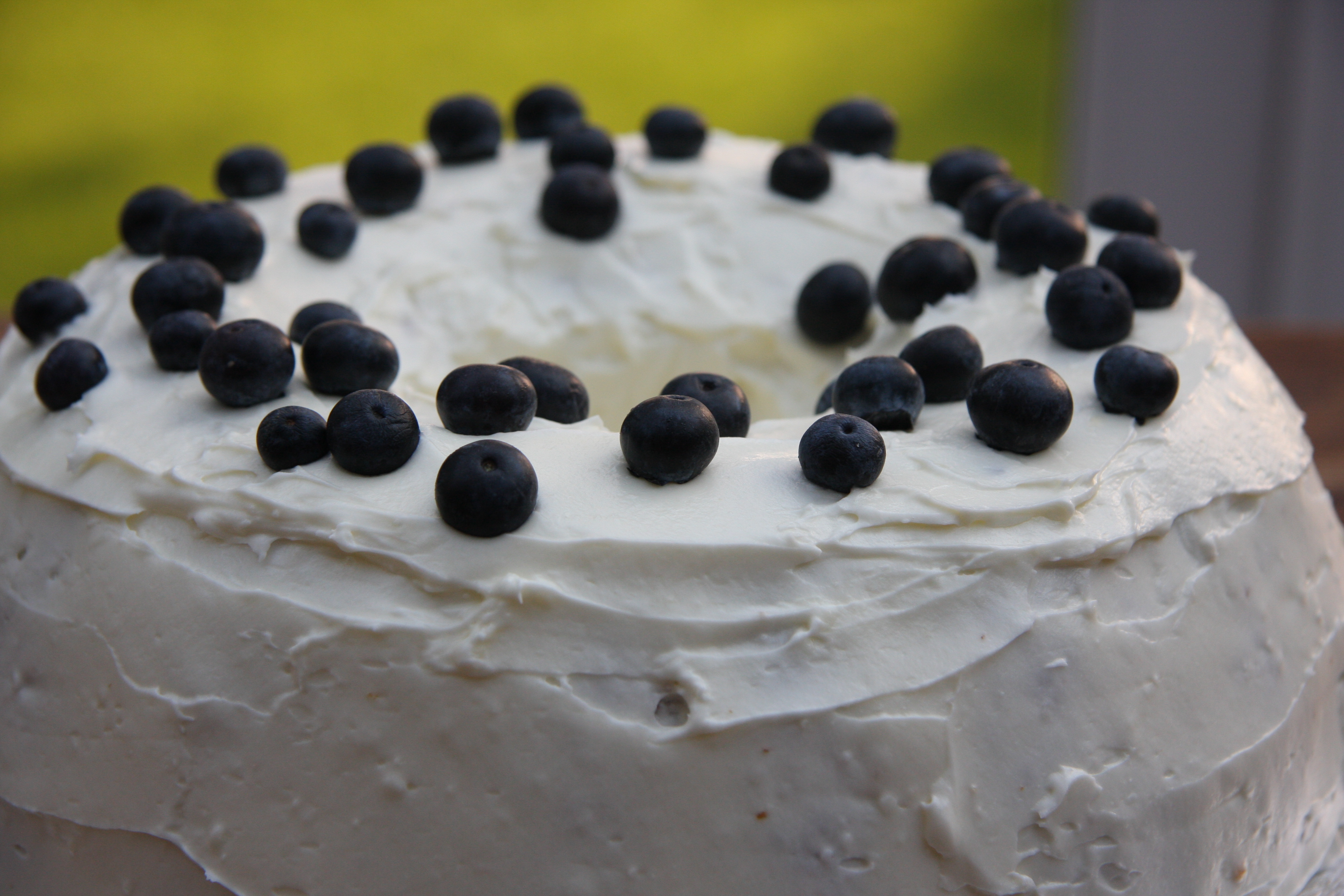 Ice the cake all over and decorate with the extra blueberries.
