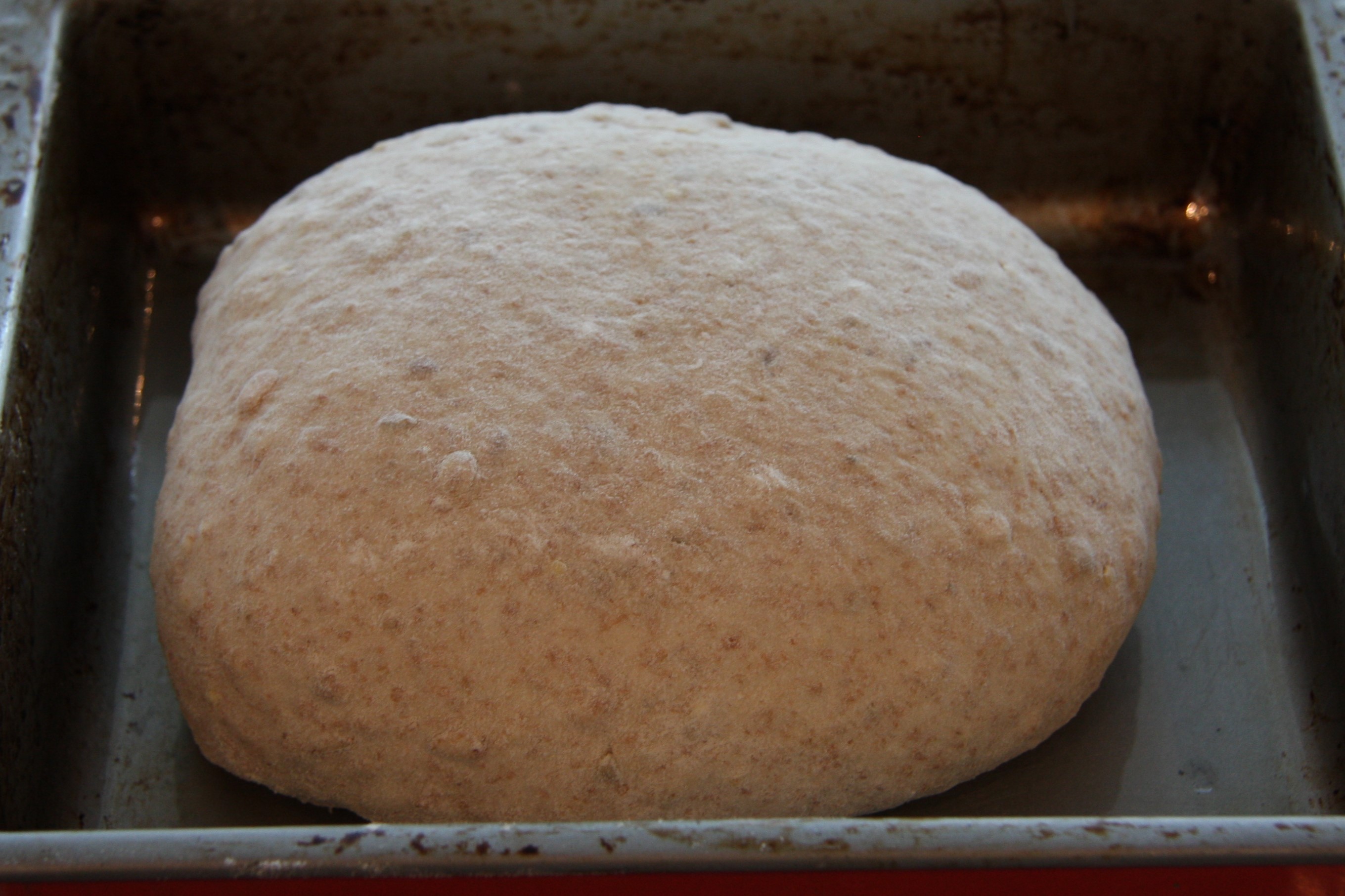 My mum recently gave me some seed and grain wholemeal bread flour that I can’t seem to find near me: I can buy the same brand but only as white flour with seeds and grains and it’s one of my favourites. I was excited to try the wholemeal version out and, not really thinking it through, tried it just using the wholemeal flour. When I put it in a bowl to rise it was so heavy I was a little worried it wouldn’t rise at all! It did, however, and it tasted good but was a little heavy and dense for my taste.