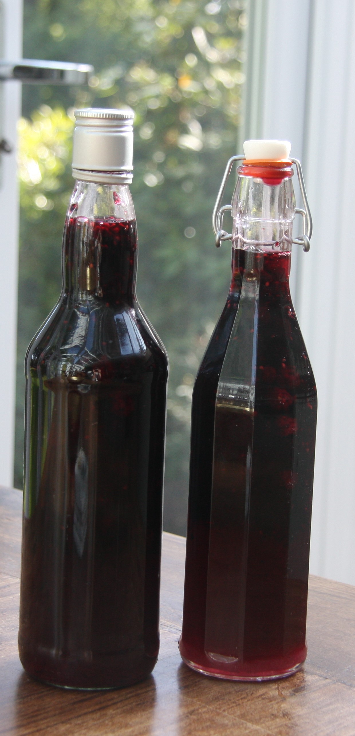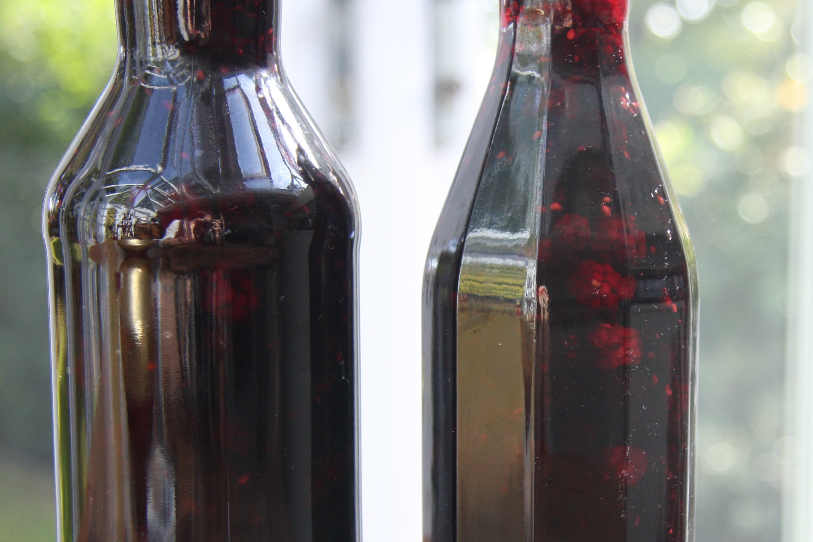 Julie gave me instructions for a litre bottle but when I got home I didn’t have any litre bottles. I was so keen to make it that I worked on 100g of sugar per 100ml of blackberries to make mine. Obviously each bottle will vary unless you weigh the first bottle of blackberries and use that weight as your base for each bottle. And even then I would expect that different blackberries will give different results.