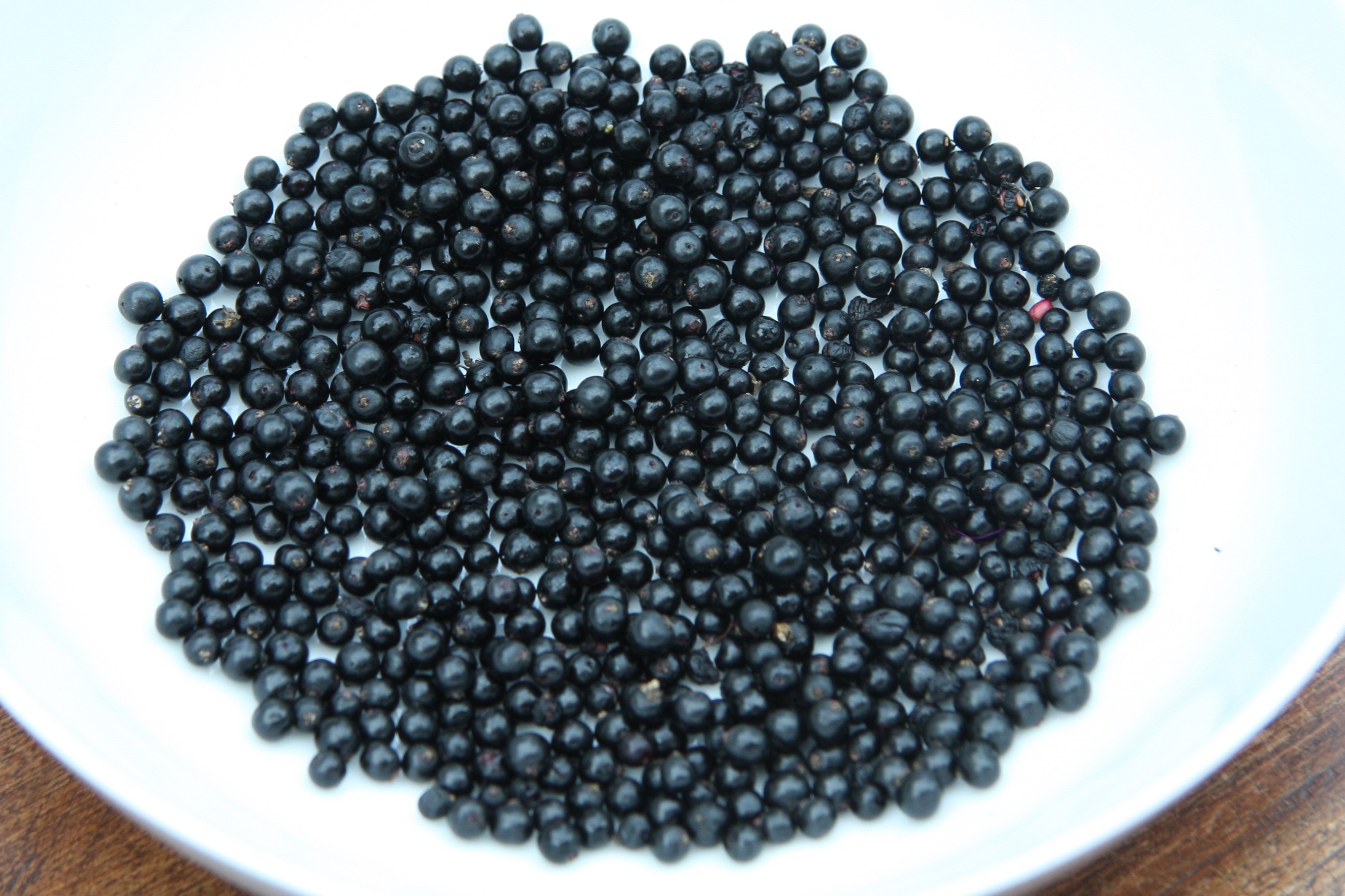 You don’t need a huge amount to add a bit of flavour and colour to your crumble. They are very easy to get off the stalks: just use a fork to strip them off. This small bowlful produced a single layer of berries in the bottom of the bowl: