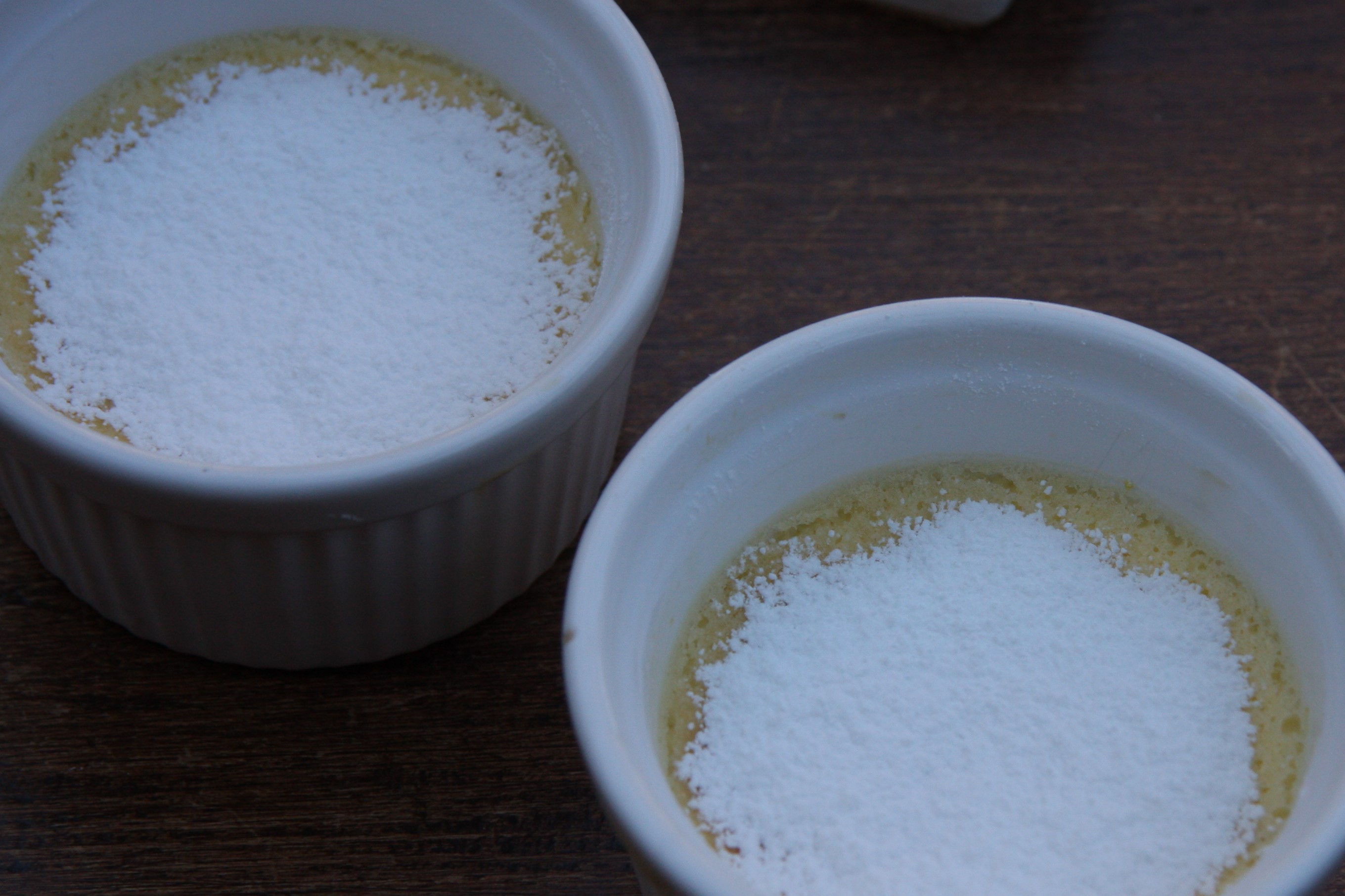 The pots need a generous layer of sugar for the caramelisation. I tried icing sugar, demerara sugar and soft brown sugar and they all give a good caramel layer.
