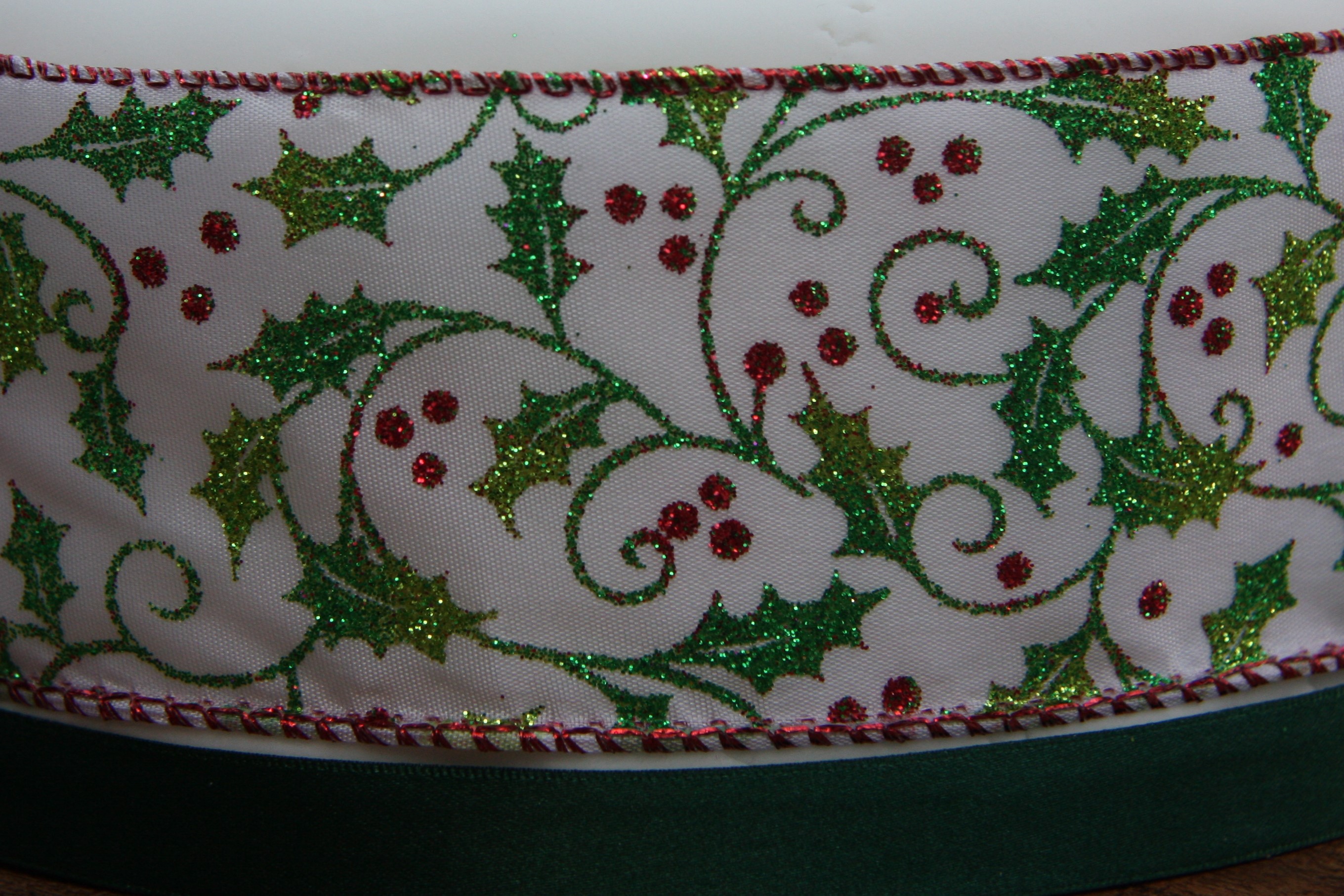 I used the same ribbon decorated with holly and glitter last year but the cake I made wasn’t deep enough for it. This year I was really pleased to find it again and even more pleased that the cake was deep enough.