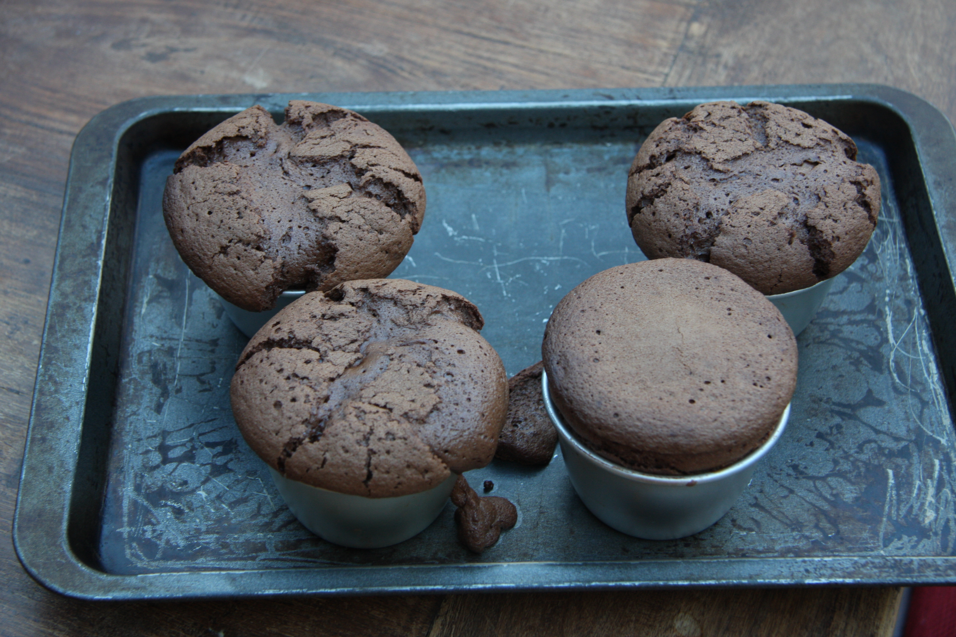 I originally only planned to put them in dariole moulds but had far too much mixture for my six moulds and put the rest in ramekin dishes. If you are worried about turning them out to serve them then ramekin dishes are the answer. They still taste just as good! They still need to be served immediately: they will keep on baking as the dish is hot and then as they cool down they will collapse.