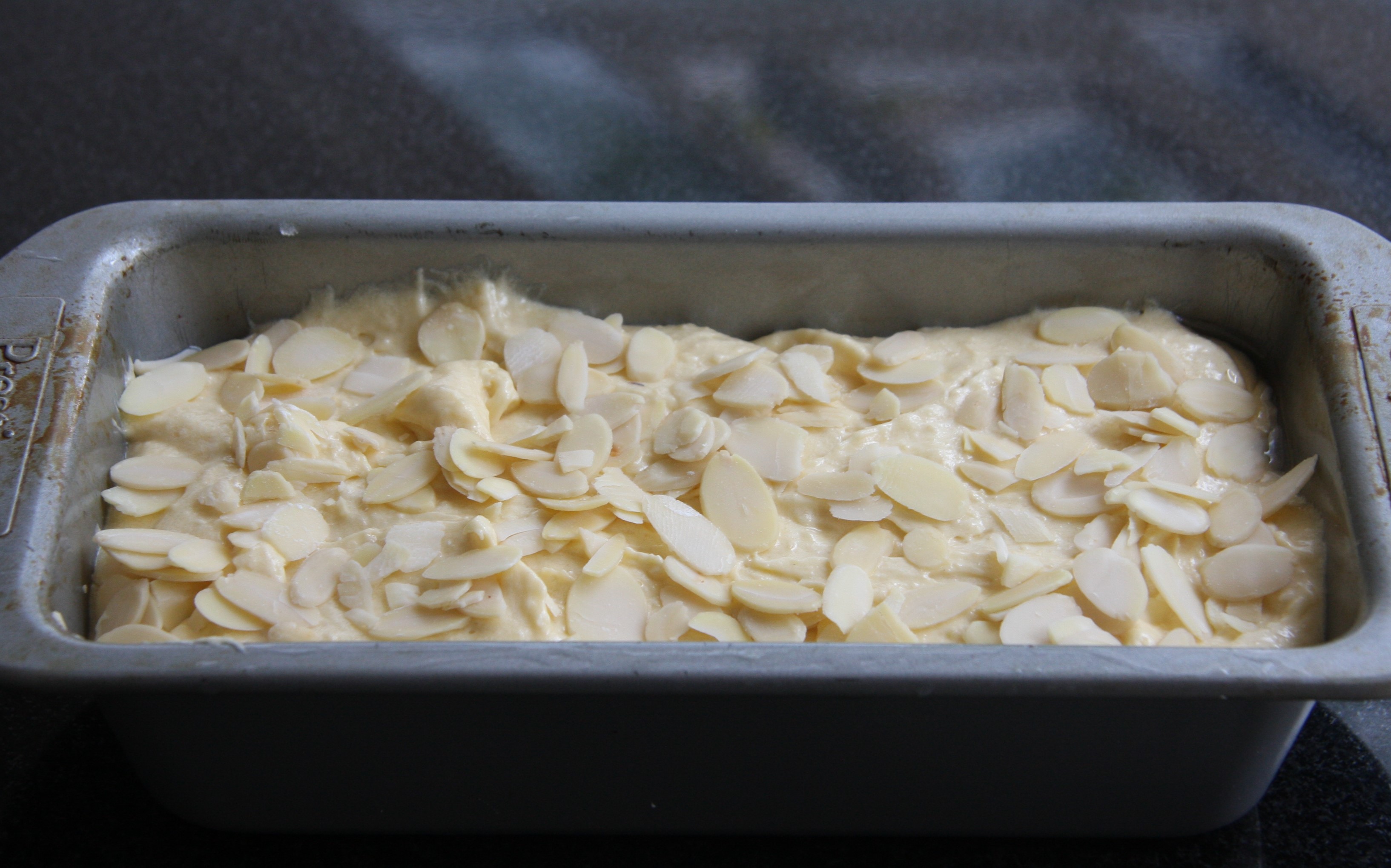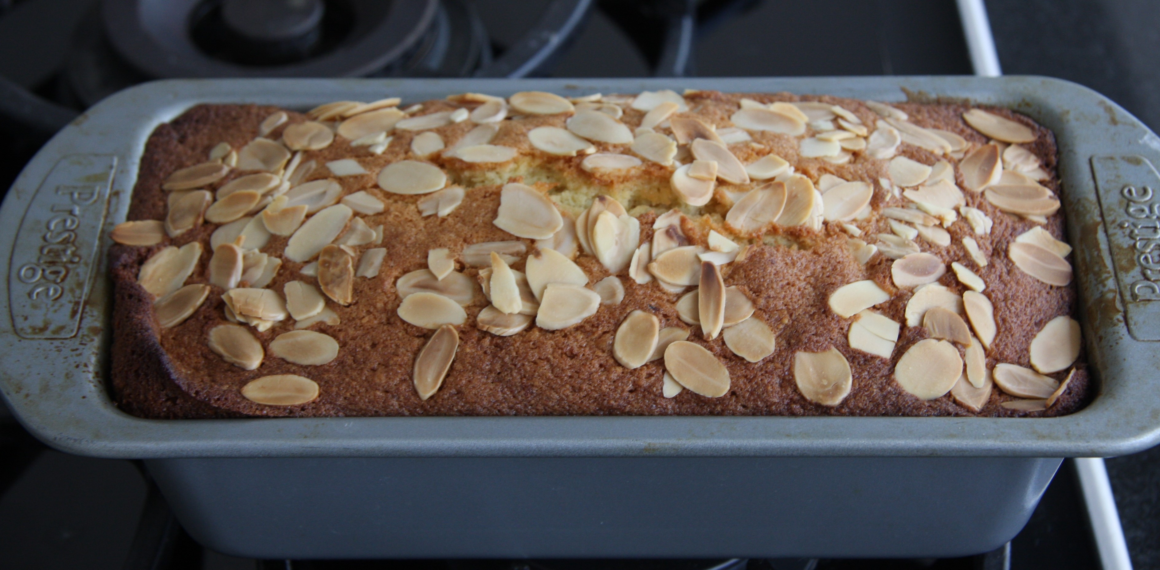 I have made a few changes to the original recipe I found in the Hummingbird Bakery’s Cake Days, which was for an orange, almond and yogurt loaf. I didn’t have any orange or yogurt and I changed a few quantities but apart from that it’s the same! I think the original recipe would be very good as well and next time I have the right ingredients I will be giving it a go.