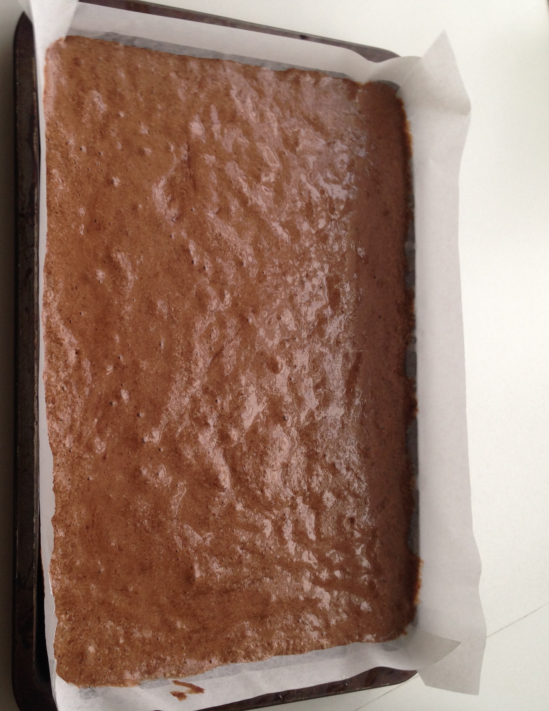 Pour into the Swiss roll tin and level gently.