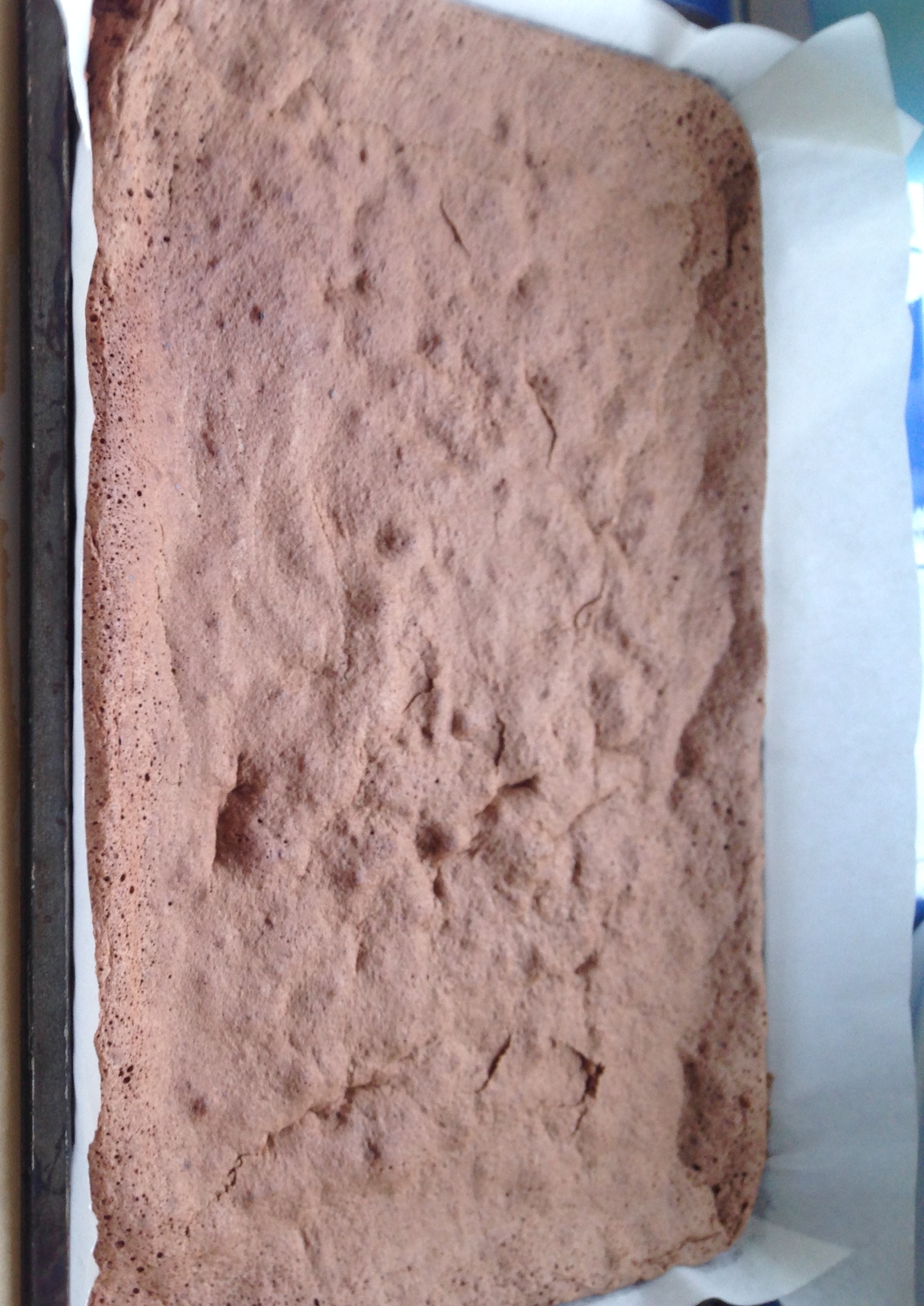 Set the oven to 180ºC and grease and line a 9×13″ Swiss roll tin with greaseproof paper.