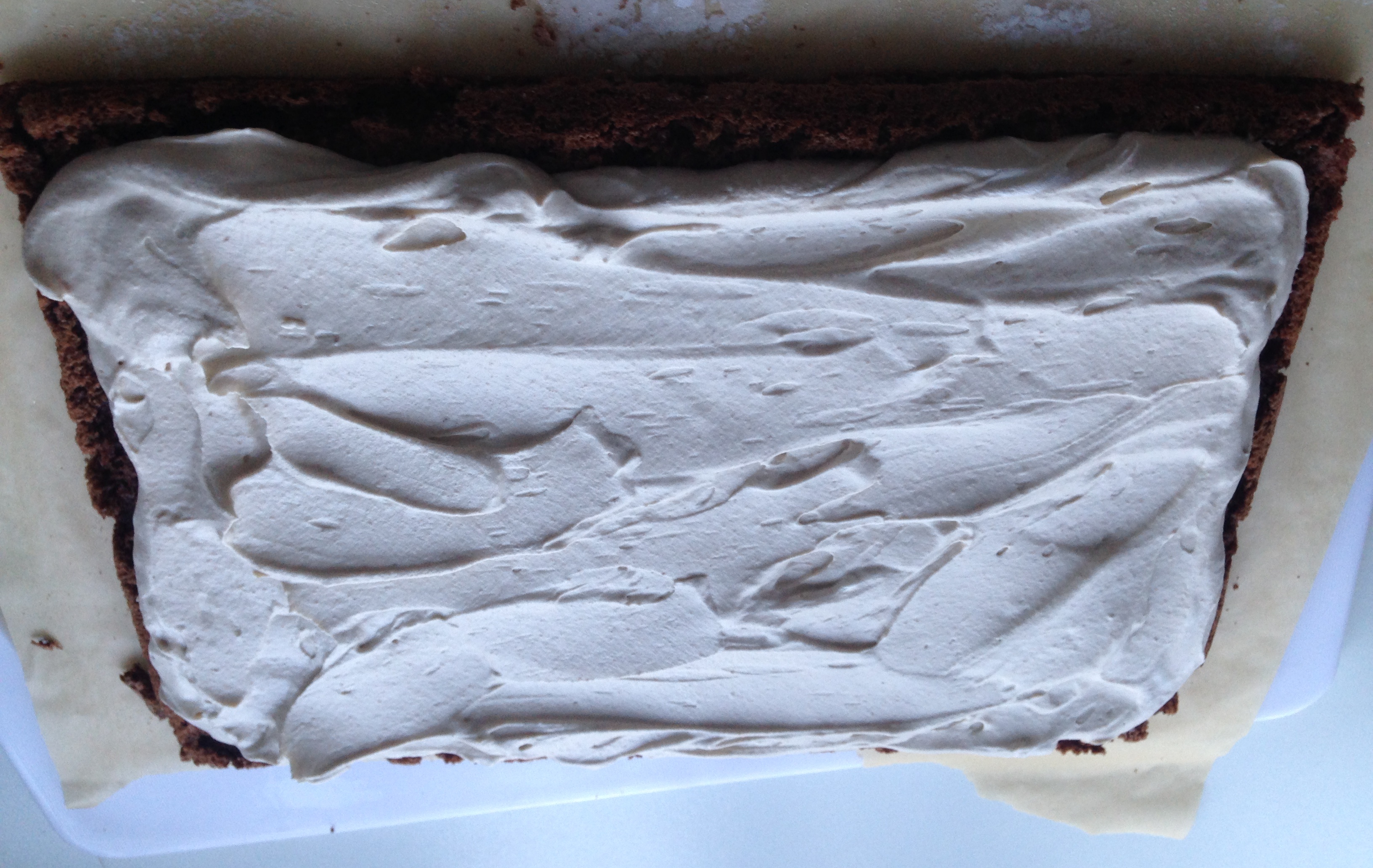 chestnut roulade fillingWhip the cream until it forms soft peaks and reserve about five tablespoons of it to decorate the roulade.