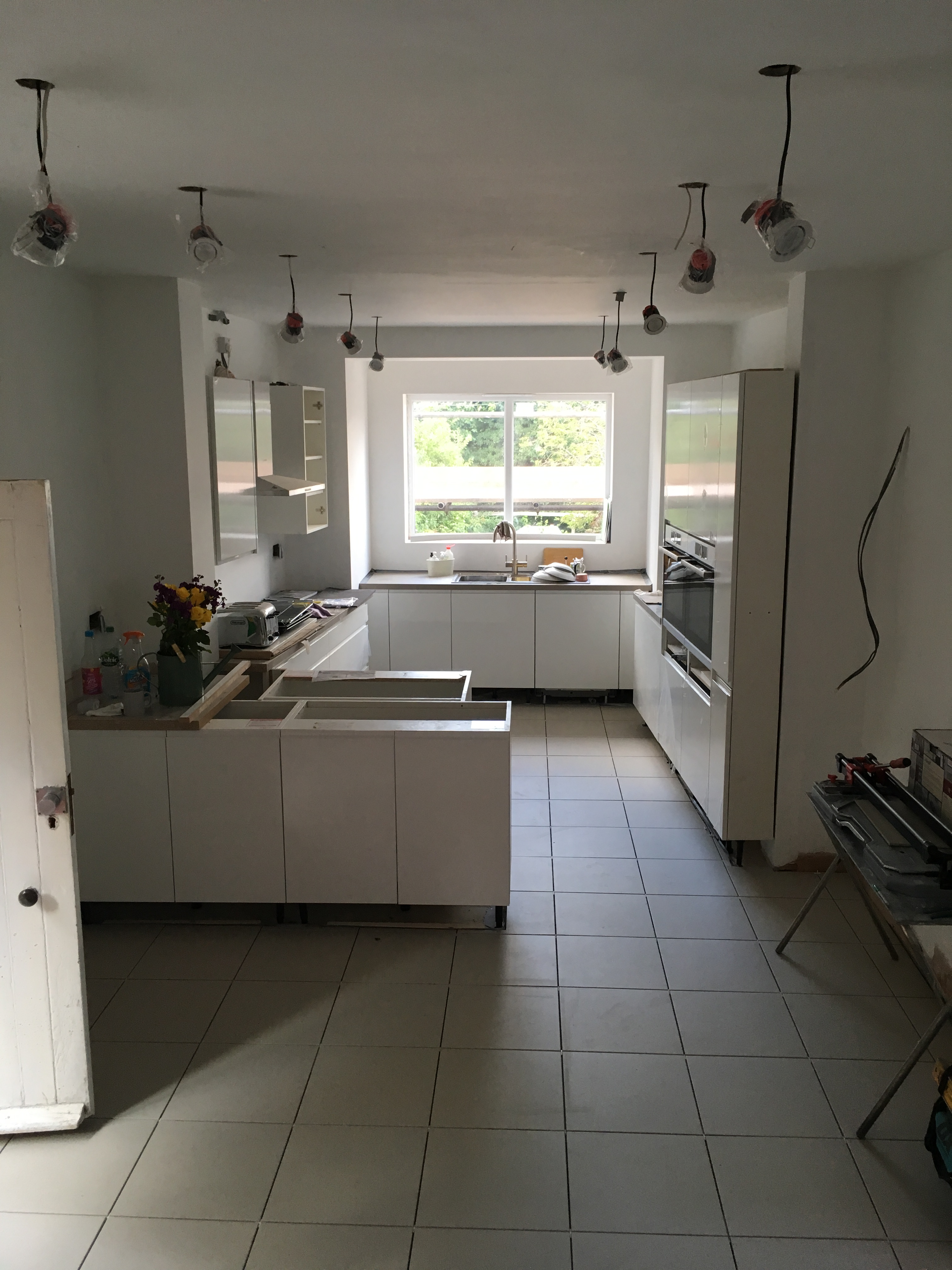 ‘Kitchen 5’ Published July 30, 2017 at 3024 × 4032 in French Patisserie and a new kitchen Most of the new kitchen is installed and the floor is tiled ‹ Back