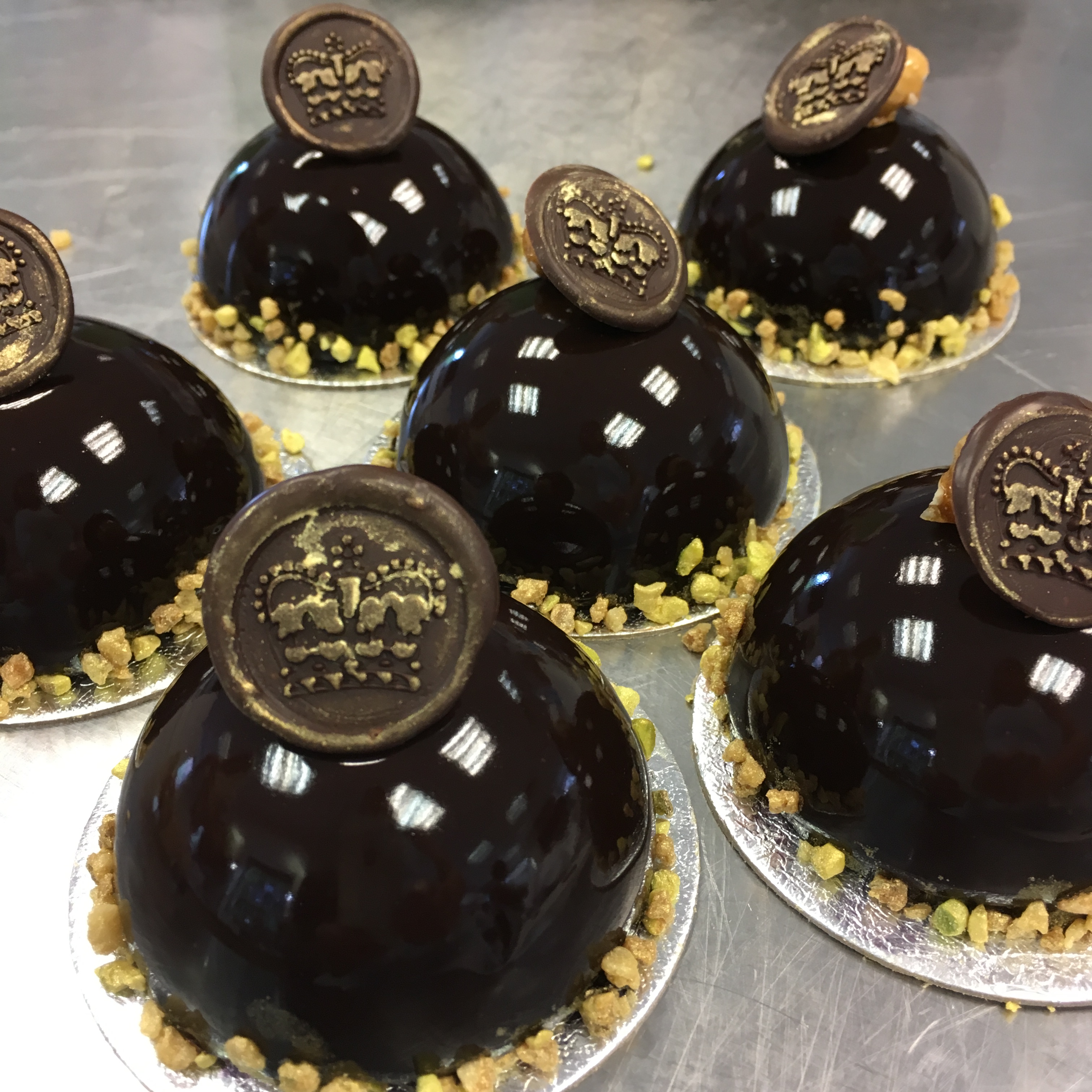 ‘Patisserie 4’ Published July 30, 2017 at 3024 × 3024 in French Patisserie and a new kitchen Finished off with chopped hazelnuts and chocolate discs made with a wax seal stamp and dusted with gold powder ‹ Back