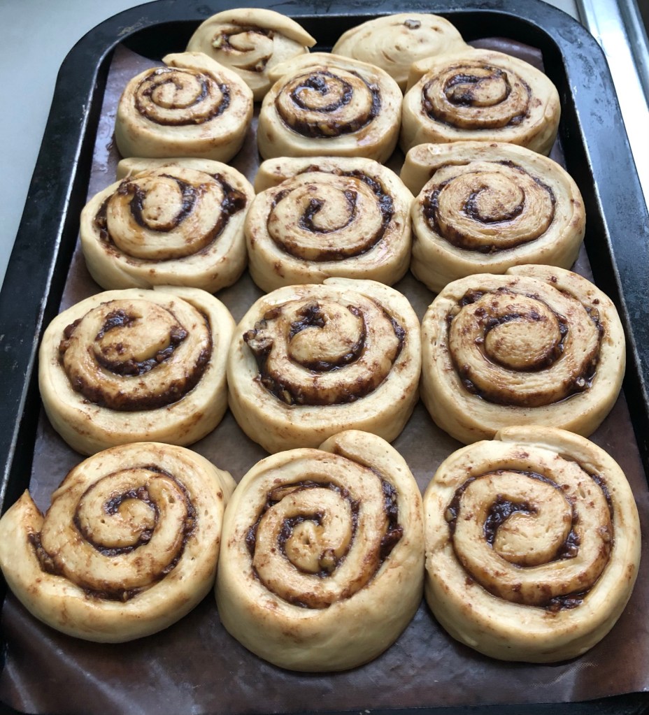 So, if, like me, you are finding this lockdown much harder than the previous ones, if you are struggling with dry January, or if you just want your diet to include fewer animal products, why not try these vegan cinnamon and pecan buns? They are ideal with a cup of coffee for a typical cold, dark January weekend after your daily outdoor exercise. I’d love to hear what you think, so please get in touch!