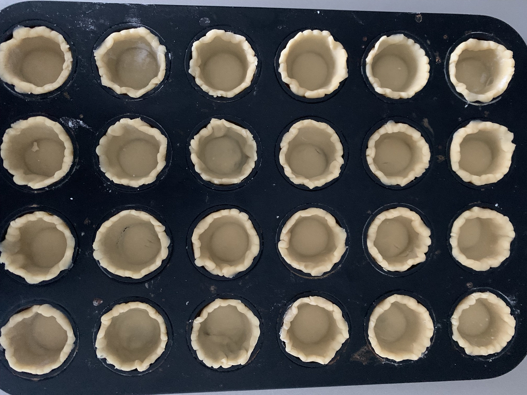 Pastry lining a mini muffin tin