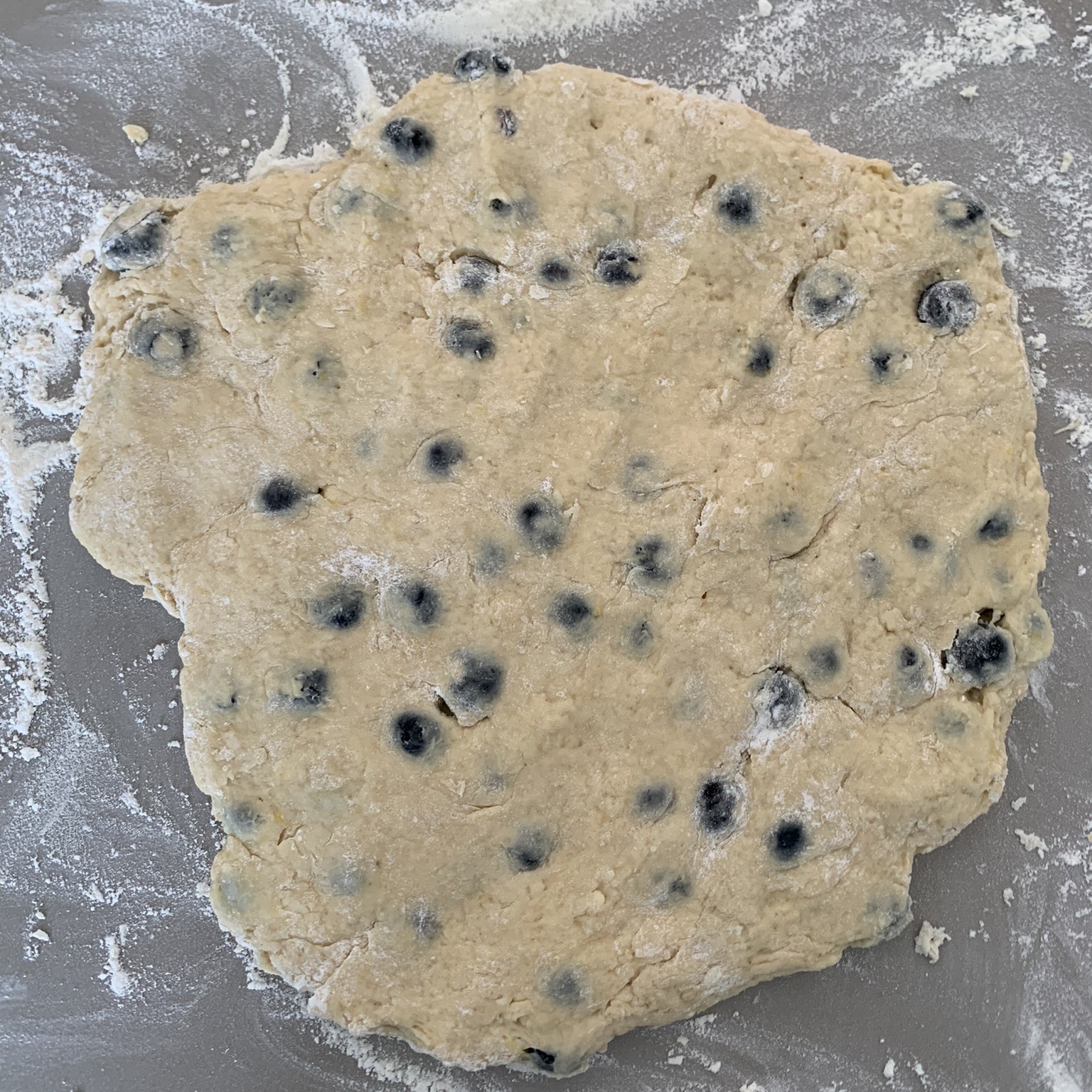 Tip out onto a floured surface and knead very lightly (without squashing the blueberries!).